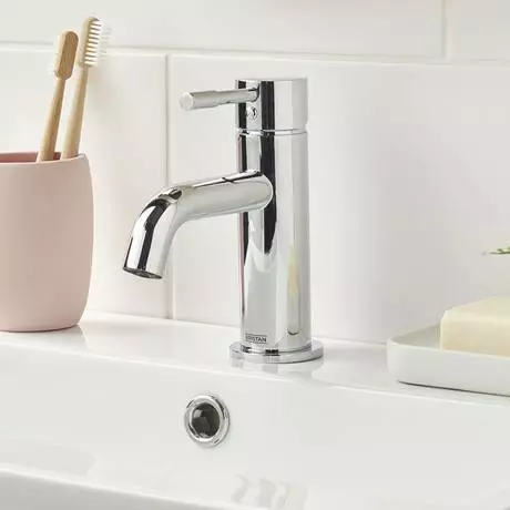 The Mila tap range from Bristan has contemporary appeal with it’s elongated angled spout and stylish easy to use lever. This mono basin mixer features a long life ceramic cartridge for added durability and ease of use and is supplied with metal fixing nut for added durability and to secure your tap in place. Suitable for high and low pressure water systems. Includes flexible tails and clicker waste.