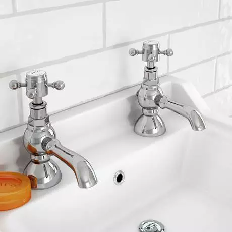 These Chatsworth 1928 Traditional Crosshead Pillar Basin Taps are just the thing to top off your vintage inspired bathroom. The 142mm high chrome basin taps have a decorative shape with a period feel, while their polished finish gives them a luxurious shine. Finely crafted cross taps add to the look and feature white inlays with ‘hot’ and ‘cold’ in classic lettering. Made from hardwearing solid brass, these traditional basin taps will stand the test of time. Pair them with other designs from the Chatsworth collection such as the 1928 Traditional Soap Dish Holder to create a cohesive look.