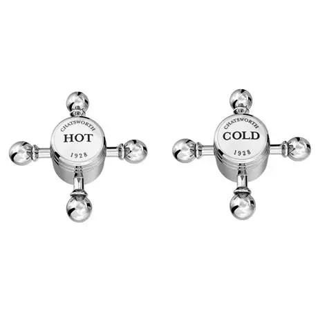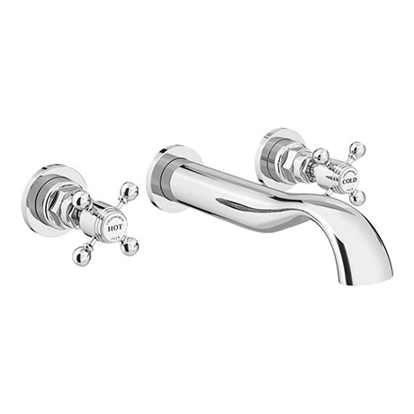 The traditional Chatsworth 1928 chrome three hole wall mounted basin tap, create a traditional feel in your bathroom with this classically styled luxury basin mixer tap. Manufactured from brass with a polished chrome plated finish. Features decorative quarter turn cross heads with classic white indices. Transform any bathroom’s decor to the luxury and elegance of yesteryear.