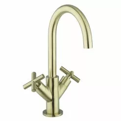 The MPRO collection delivers on function, style and quality for a look that encapsulates a modern elegance thatβs second to none. This stunning crosshead monobloc basin mixer features a twin handle design and is fitted with ceramic disc cartridges. Manufactured from brass and finished in trendy brushed brass.