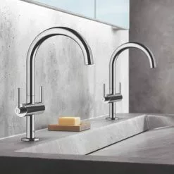 Grohe Atrio Single Lever L-Size Mono Basin Mixer with Click Clack Waste – Chrome – 32042003