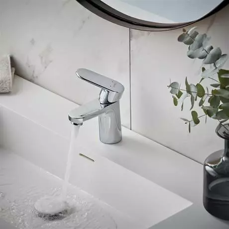 The harmonious design of Vernis Blend, with its gentle curves, has a modern and elegant look. This single lever basin mixer offers an economical way of adding designer elegance to your bathroom. AirPower technology adds generous amounts of air to the water, creating a soft, splash-free spray while EcoSmart technology reduces the flow rate to save water and energy.