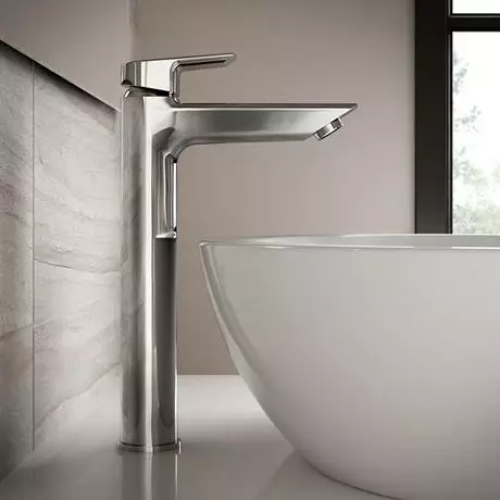 The Tesi range brings a touch of elegance into any bathroom, the collection features geometric lines combining round and angular shapes. This Single Lever Tall Basin Mixer comes fitted with an eco 5 lpm flow regulator and a temperature limit stop to prevent scalding. Comes supplied with flexible tails.