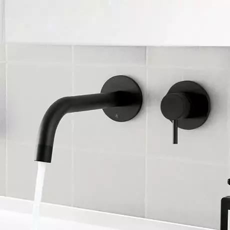 The Vos Matt Black range from JTP combines modern styling with functionality. This wall mounted basin mixer tap will catch the eye with its smooth contours and matt black finish. Suitable for medium pressure water systems.