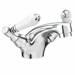 For a timeless British feel, opt for this Lancaster Traditional Mono Basin Mixer. Its graceful 117mm high body and white ceramic lever handles are inspired by Edwardian and Victorian designs. The handles of this basin mixer tap make it easy to get your preferred temperature, too, even if you only have one hand free. Aiming for a chrome mixer tap with a slightly different look? Items in the Lancaster collection are also available with black lever handles.