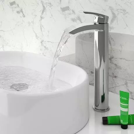 Pair your countertop sink with the Nexus Chrome High Rise Mono Basin Mixer Tap to add a touch of sophistication to your bathroom. This chrome mixer tap is 311mm tall and manufactured from hardwearing solid brass with a sparkling polished finish. Its curved design and rounded body will make a bold statement once installed next to your countertop basin. A single lever gives you easy control of the tap’s water temperature and flow, while the wide spout will create a luxuriously cascading waterfall effect. Match with a sleek Nexus Bath Filler Tap to top off your tub.