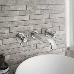 Chatsworth 1928 Antique Brass Wall Mounted Crosshead Basin Mixer Tap