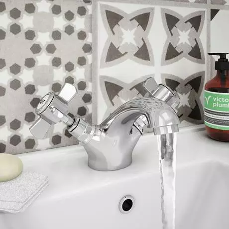 Period inspired elegance meets state of the art functionality in the Regent Traditional Mono Basin Mixer tap. The 108.5mm tall design features a smooth curving spout and iconic cross head handles that give your bathroom a regal air. This chrome mixer tap has a hardwearing brass body for durability, plus a five year guarantee for peace of mind. The Nuie Carlton Basin and Pedestal basin has a similarly classic look to complete your interior scheme.