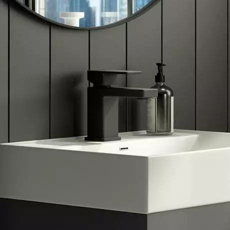 Going for bold appeal in your bathroom? Look no further than the Toreno Modern Black Basin Mono Mixer Tap. In a sleek matt black finish, this basin mixer tap creates a striking statement in the sink area β especially when complemented by white or grey tiles. It has a height of 137mm and features a slender flat lever, making it a good fit for smaller basins. With clearly marked ‘H’ and ‘C’ indices, you and your guests will never get the temperature mixed up. This matt black mixer tap is made with a solid brass body for durability.