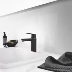 The sleek modern matt black waterfall basin tap from our Valencia collection will transform your bathroom with it’s clean lines and elegant open spout which allows the water to cascade into your basin for creating a beautiful waterfall effect. It’s single lever handle provides efficient control of both temperature and flow, while the sturdy brass body and stunning matt black finish ensure a cutting-edge aesthetic and impressive durability. Supplied with a click clack waste that operates simply by pressing down on the stopper.